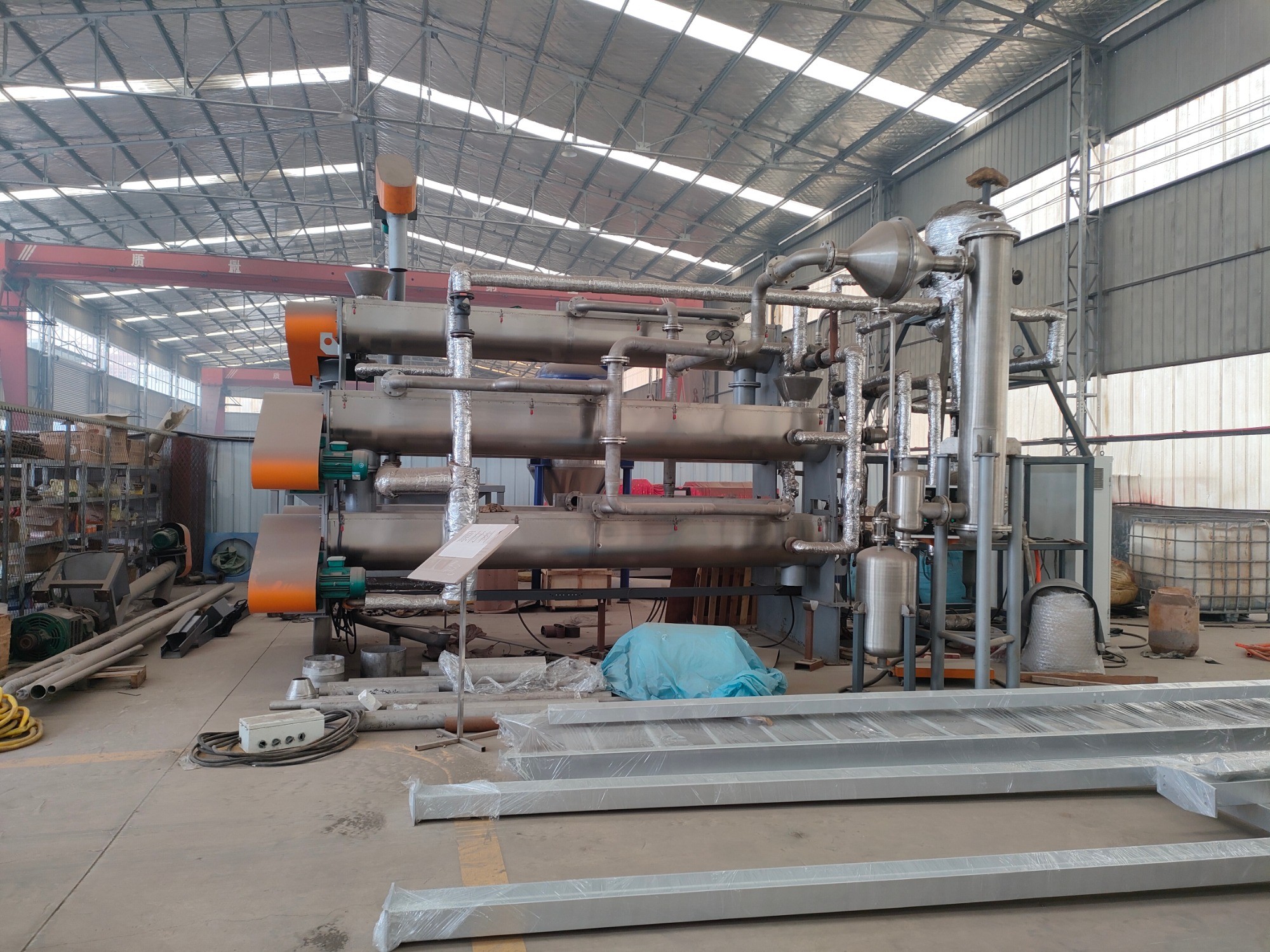 連續(xù)式多層干燥機(jī),ITon/h(1噸/小時(shí))的機(jī)器直徑500mm,長度 6m,共5組口 防止粘合特殊設(shè)計(jì)